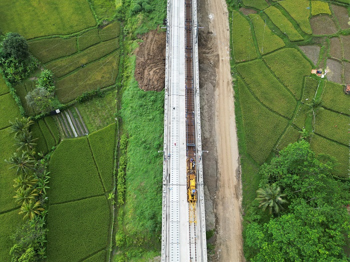 2022年4月20日,第一根500米長(cháng)軌在印度尼西亞西爪哇省萬(wàn)隆縣雅萬(wàn)高鐵動(dòng)車(chē)走行線(xiàn)順利鋪設,雅萬(wàn)高鐵開(kāi)始啟動(dòng)鋪軌施工。