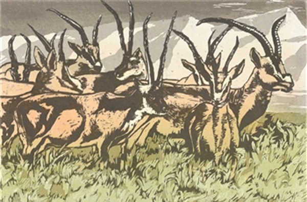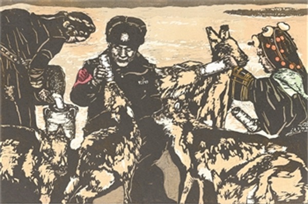 套色版畫(huà)作品《可可西里的故事》,是根據鐵路民警的真實(shí)故事創(chuàng )作而成的。作品用四聯(lián)形式,描繪了鐵路民警呼吁保護珍稀野生動(dòng)物藏羚羊的故事。沿著(zhù)青藏鐵路進(jìn)入美麗的青藏高原,鐵路民警帶領(lǐng)志愿者深入可可西里自然保護區,喂養受傷的幼小的藏羚羊,使它們得到呵護與照顧,讓這些珍稀野生動(dòng)物受到更多關(guān)注,在廣闊的高原繁衍生長(cháng)。陳娟 制作