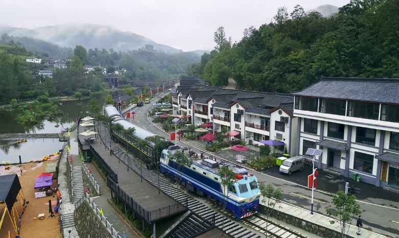 A train stops by a tourist area in Luanchuan county in Central China's Henan Province on Tuesday. China State Railway Group, the state railway company that operates the world's longest high-speed railway network, has invested 53.76 million yuan ($7.93 million) to help poverty alleviation in Luanchuan county since 2013. The Chinese government aims to rid the country of extreme poverty by 2020. Photo: Courtesy of China State Railway Group