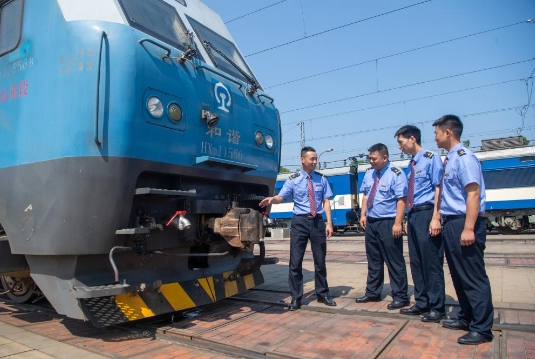 6月12日,中國鐵路成都局集團有限公司重慶機務(wù)段渝懷線(xiàn)的列車(chē)司機們在進(jìn)行工作交流。新華社記者 唐...