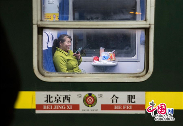 由北京西開(kāi)往合肥的K4159次列車(chē)。中國網(wǎng)記者 馬曠/攝